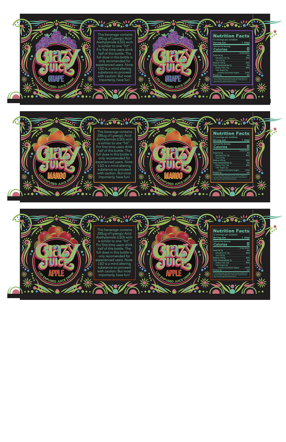 Crazy Juice was created for Graphic Design course. The assignment was to create design for something controversial or unusual. I decided to create a Psychedelic drug infused Juice drink called Crazy Juice.