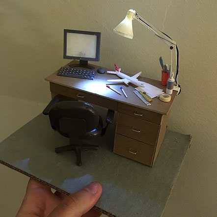 I started making model aircraft out of paper in middle school. Since then I have created all kinds miniatures, developing all of my techniques on my own. All of my models and creations are built totally from scratch materials including paper cardboard wire and clay. I have even included lighting and electronics in my model work.