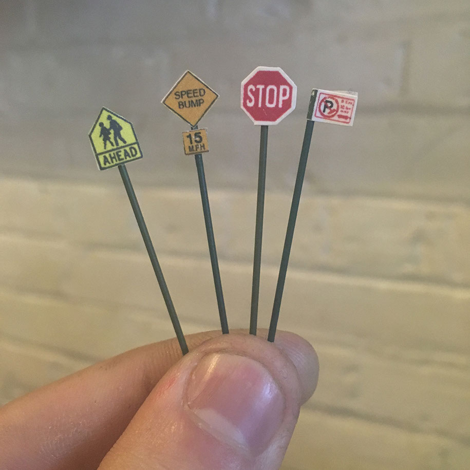 In 2017 I worked at Brooklyn Model Works, a full service miniature and custom fabrication shop in Brooklyn. We were working on a large model of New York City for Gulliver's Gate, a newly opened miniature world exhibition in Times Square. I curated and created graphics for billboards, street signs and other signage in the model.